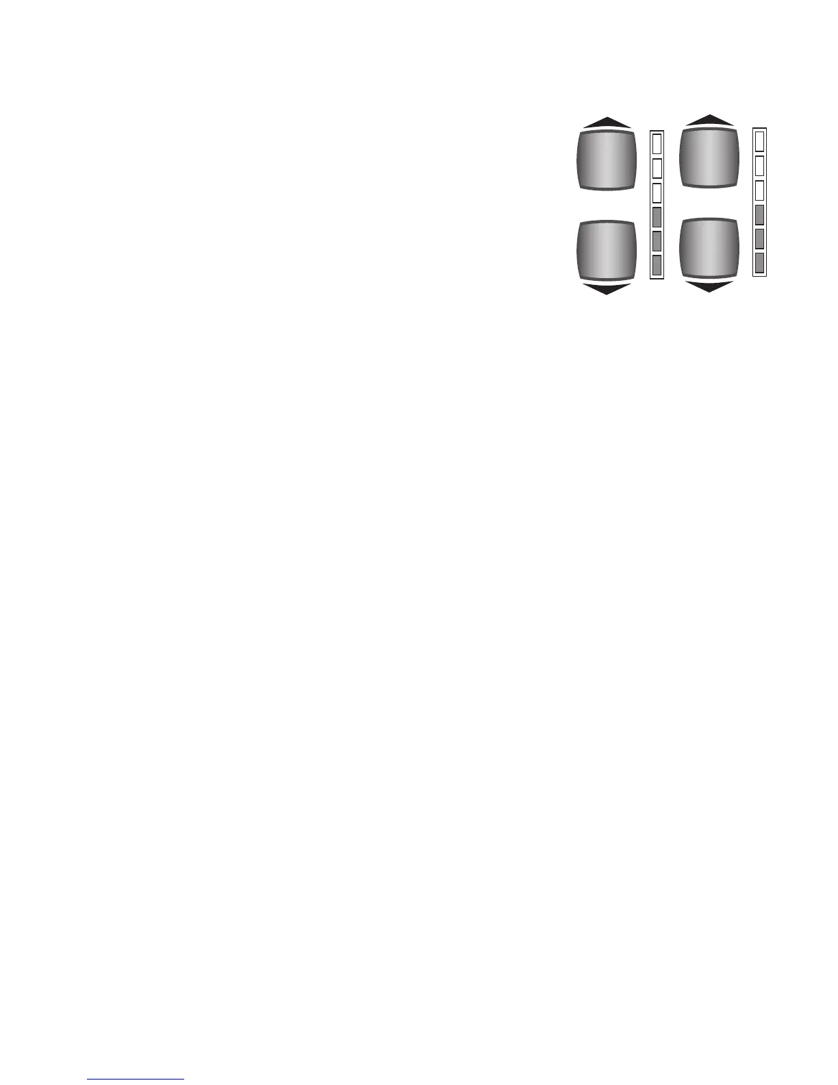 lights next to the volume buttons will visually illustrate the volume levels. All lights illuminated red indi-