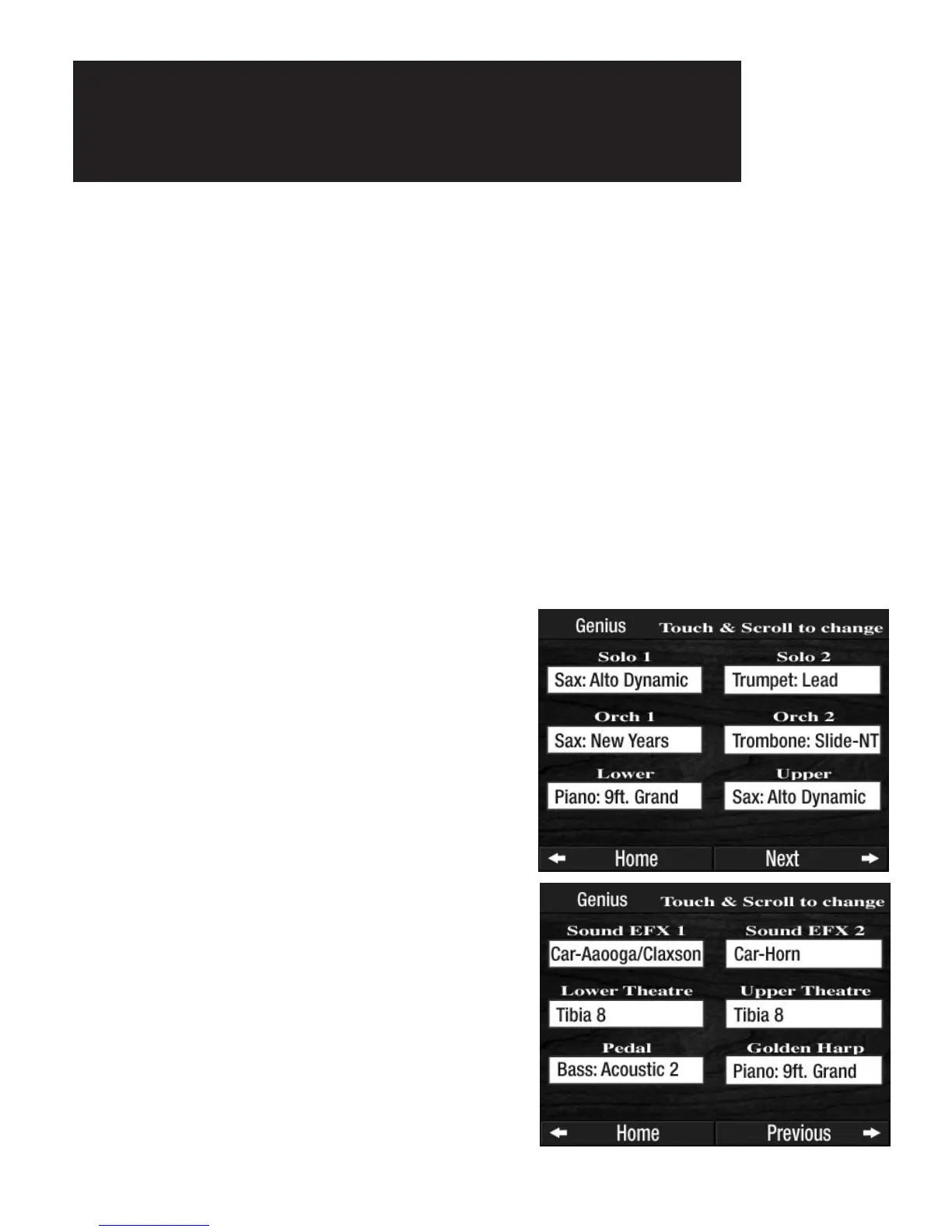 GENIUS tab and begin scrolling through the sounds available (on the screen)