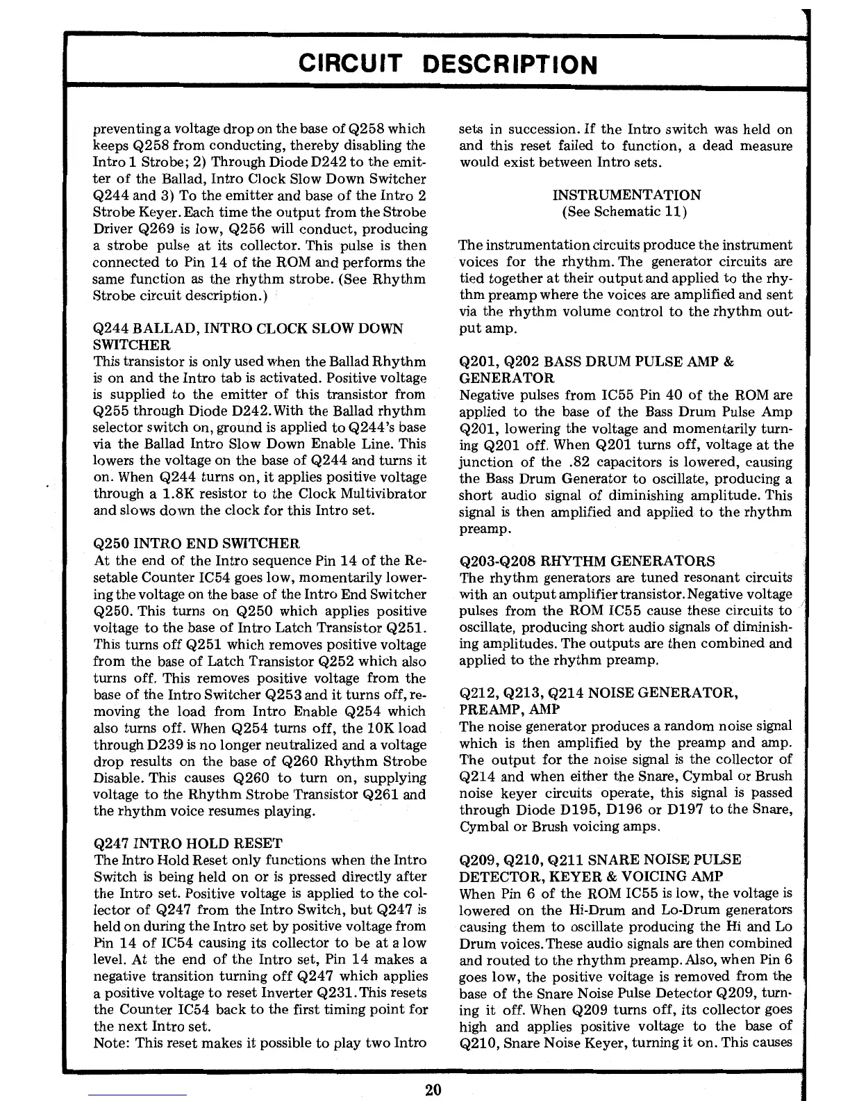 Lowrey SCT - Instrumentation (See Schematic 11); Bass Drum Pulse Amp & Generator; Rhythm Generators; Snare Noise Pulse Detector, Keyer & Voicing Amp