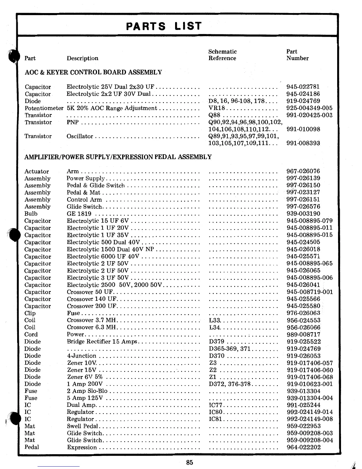 Lowrey SCT - Bass Pedal Assembly; Bench Assembly; Chord Function Generator Board Assembly