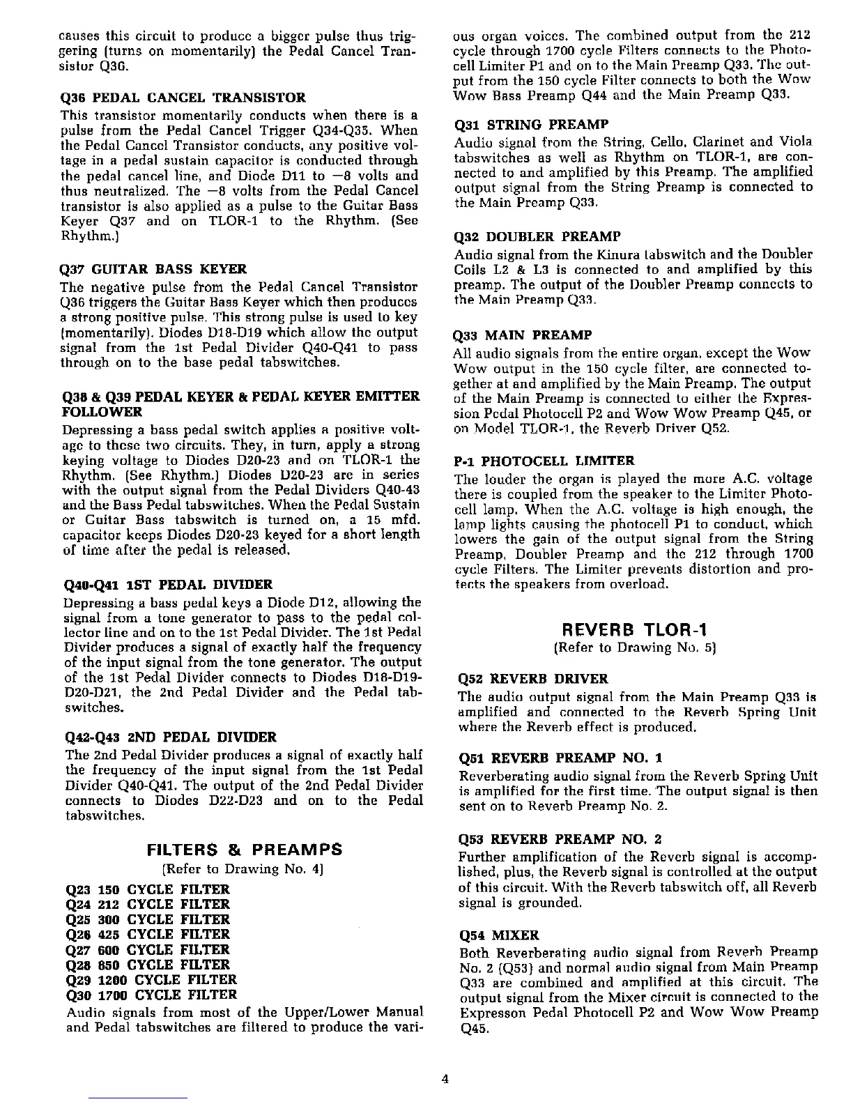 Lowrey Tlo-1 - Filter and Preamplifier Networks; Reverb Circuit Description (TLOR-1)