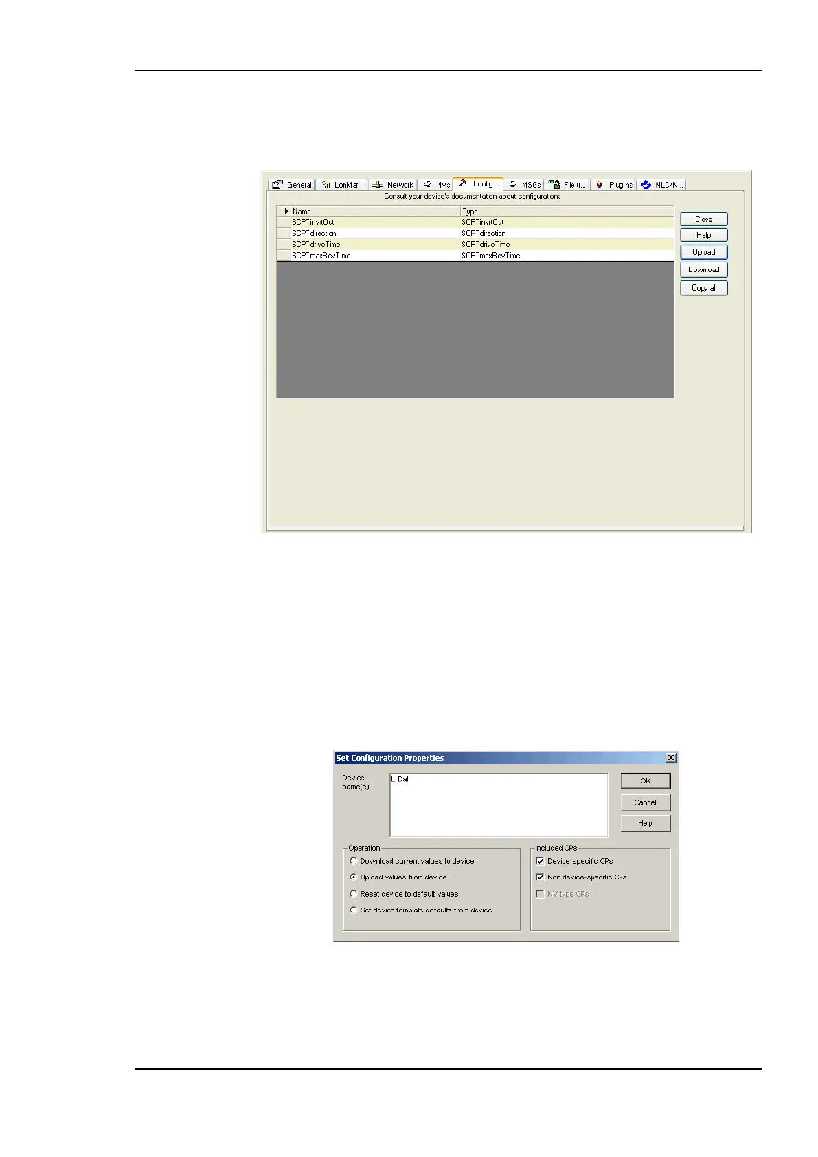 2. Press the Upload button on the Configuration tab of the device properties (see Figure