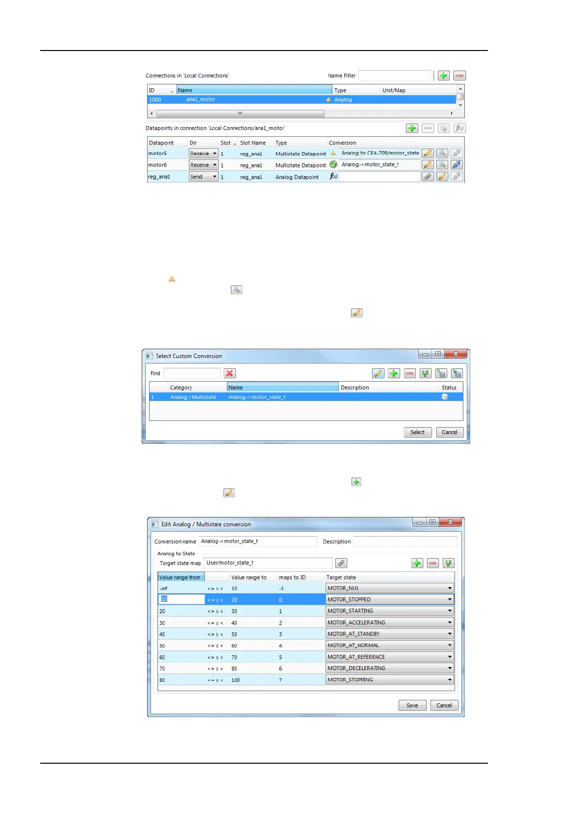 mark and the default conversion (e.g. ‘Analog to CEA-709/motor_state_t’). By