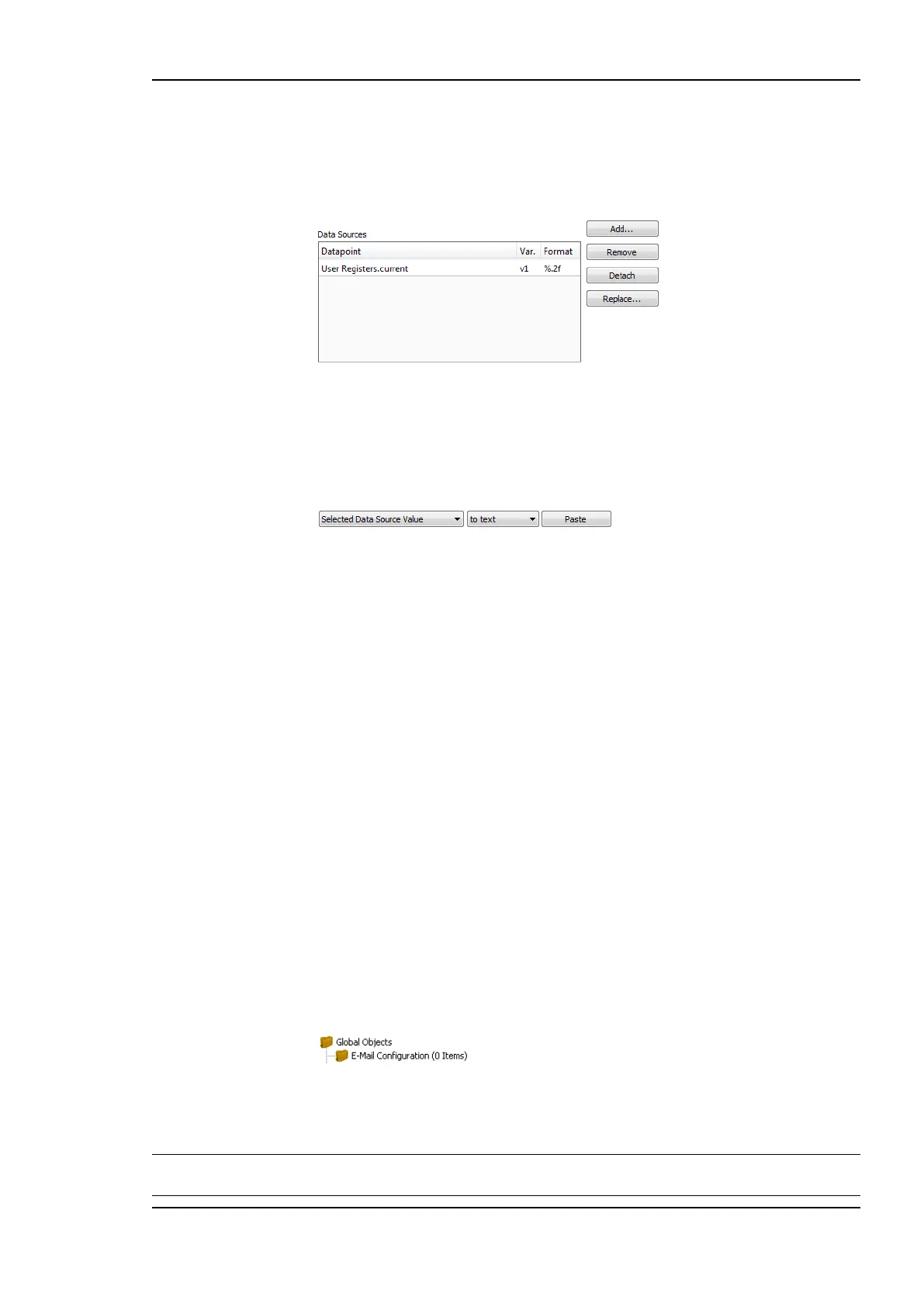 5. If the e-mail text shall contain values of data points, add data points to the Data