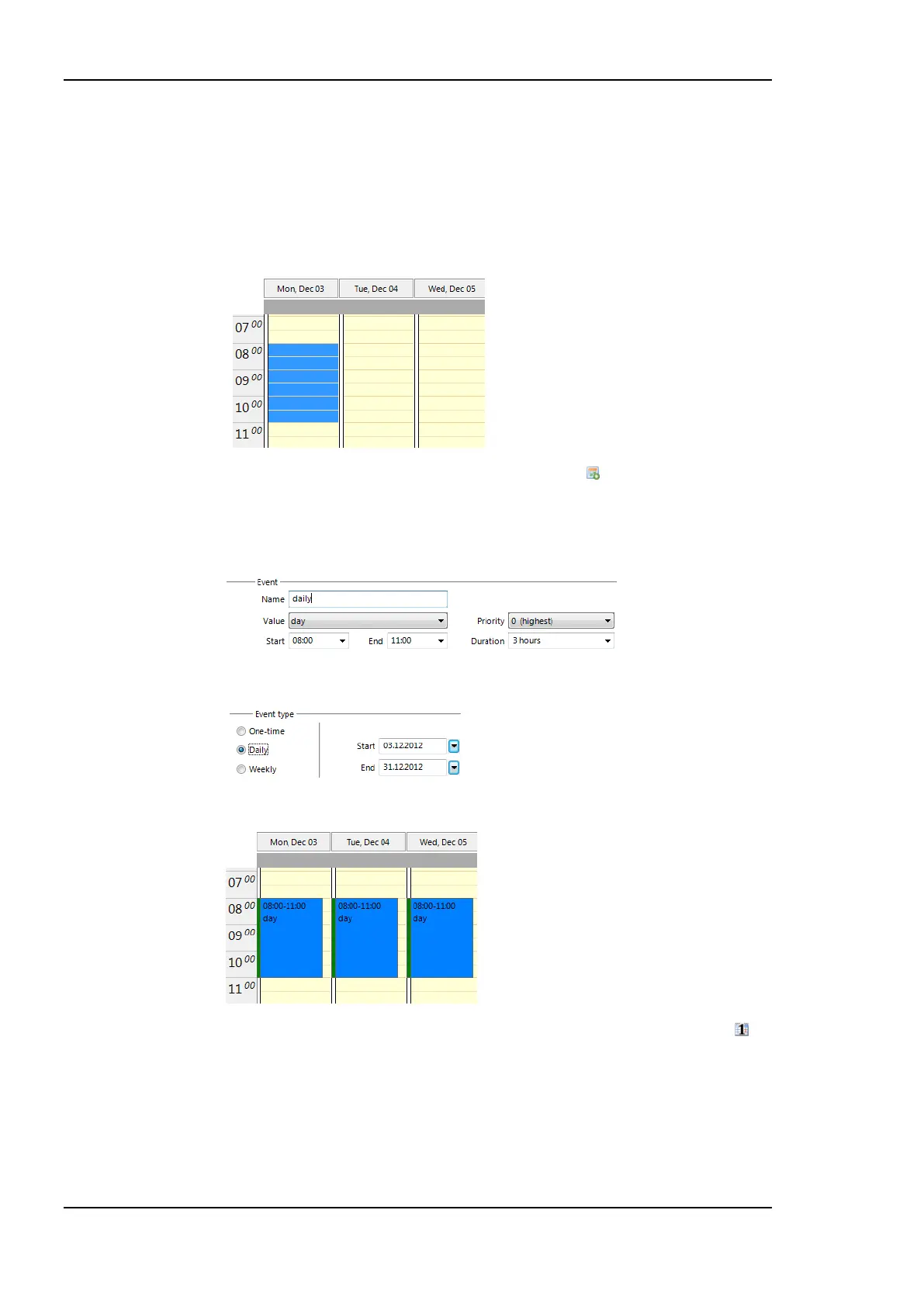 needs. Optionally you should set a priority, if scheduled events overlap in the preview.