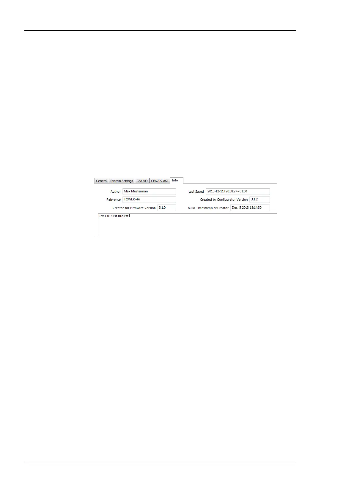 Figure 206: Info tab in project setting.