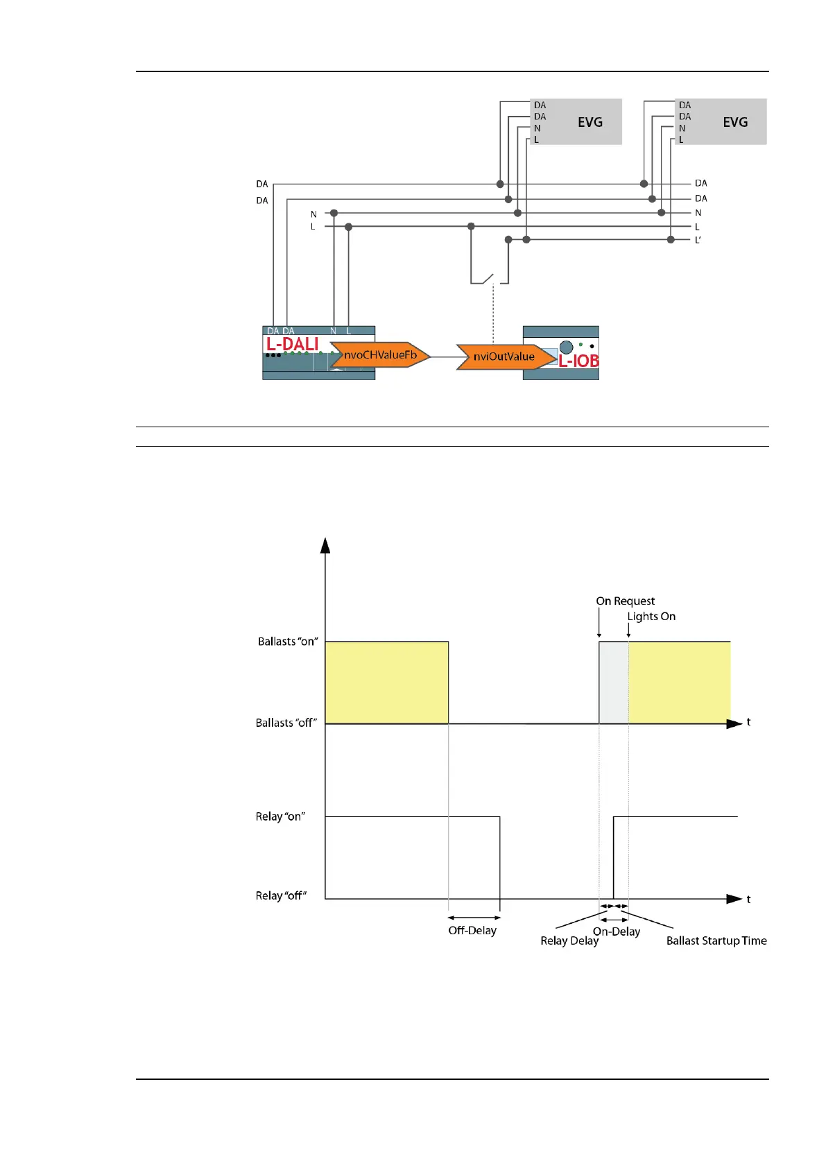 Figure 242: Wiring example for switching ballast mains using L-IOB relay output.
