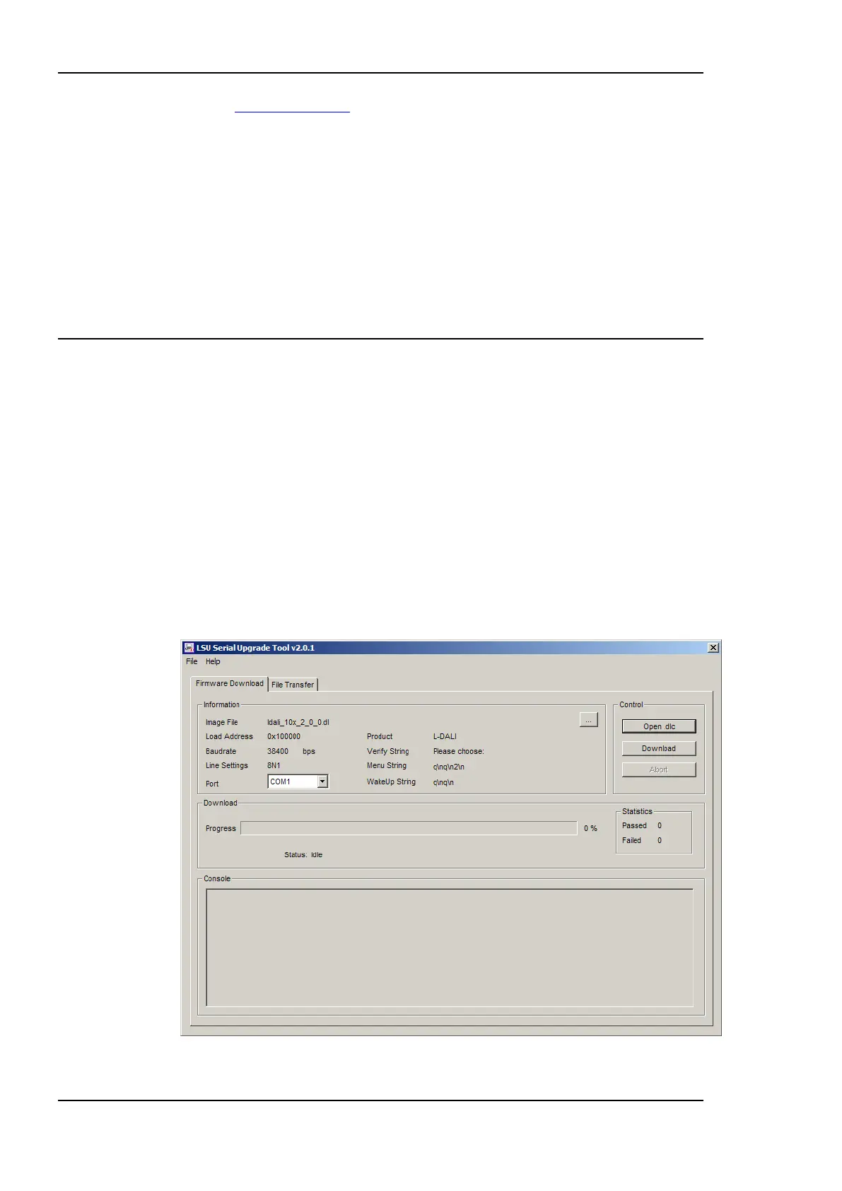 To download the firmware via the console interface, the L-DALI must be connected to the