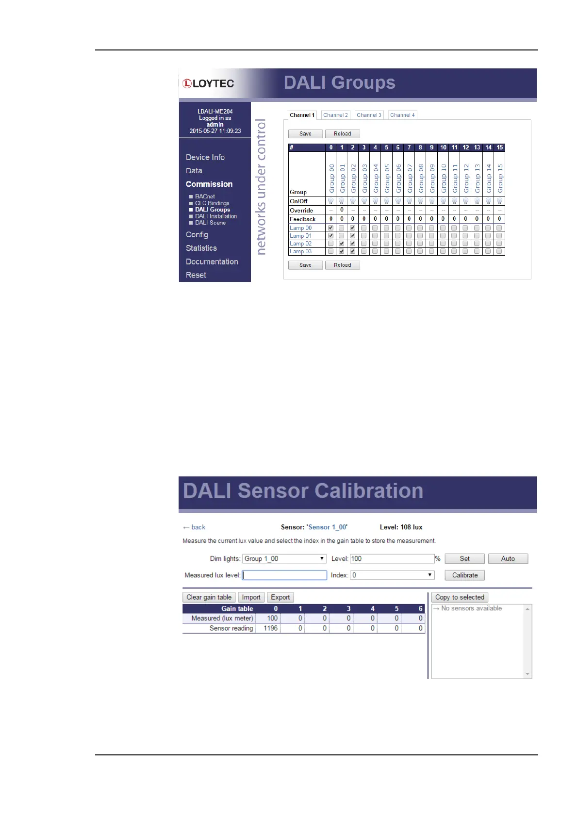 is to be calibrated. The DALI sensor calibration page is shown in Figure 32.