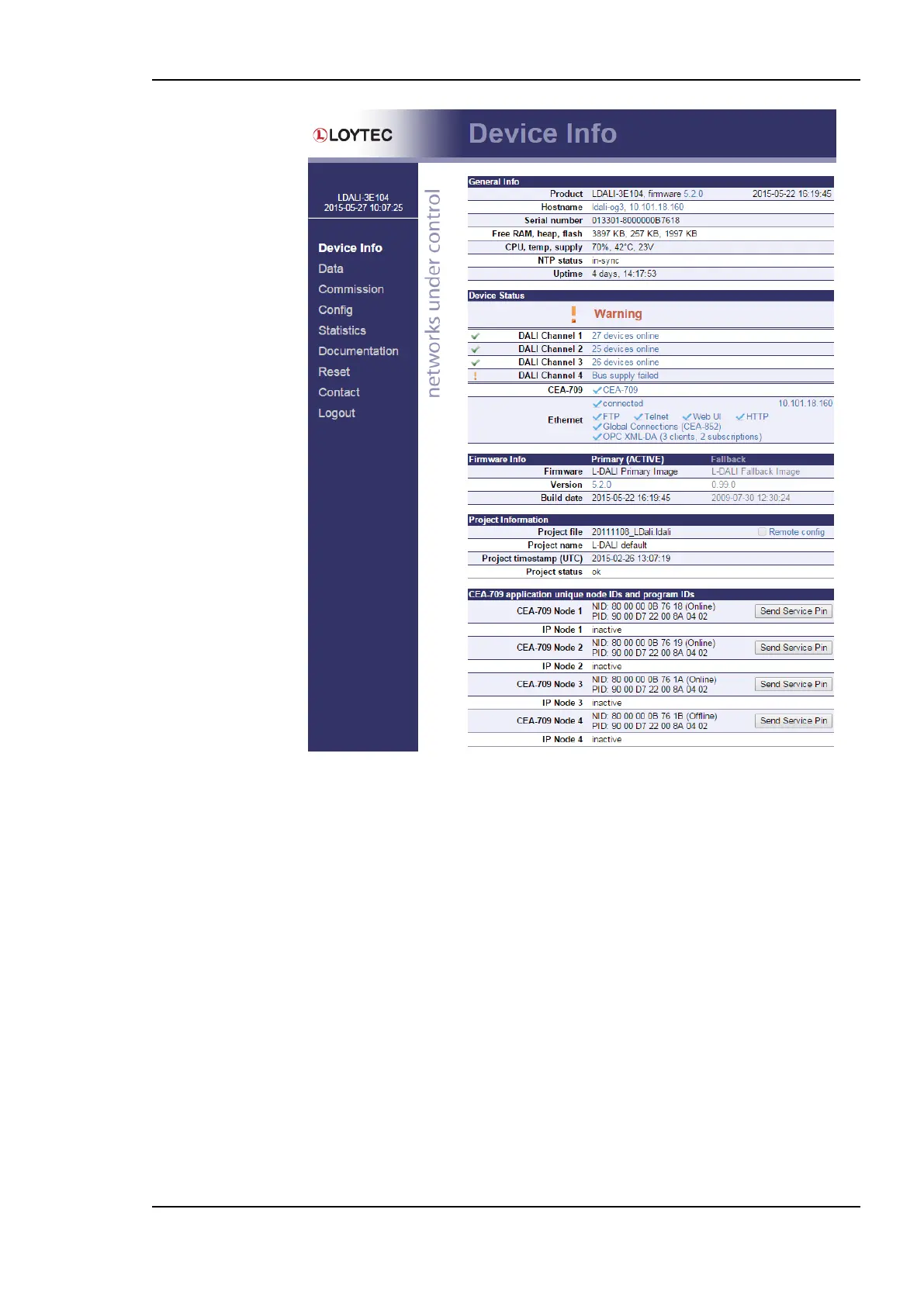 CEA-709 network interfaces. This example shows the device information page for a