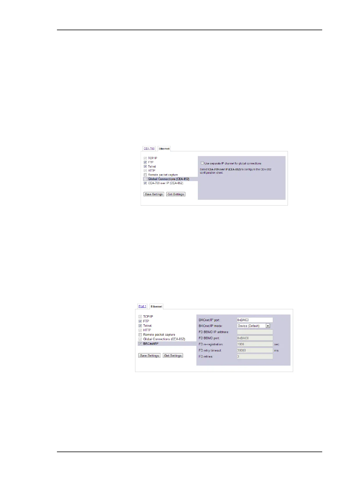 device. This is indicated by the checkbox Global Connections (CEA-852) on the Ethernet