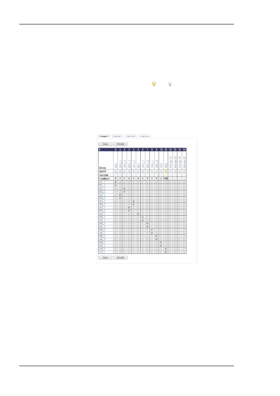 The lamp symbol shows whether the group is on or off . Clicking on it toggles the group