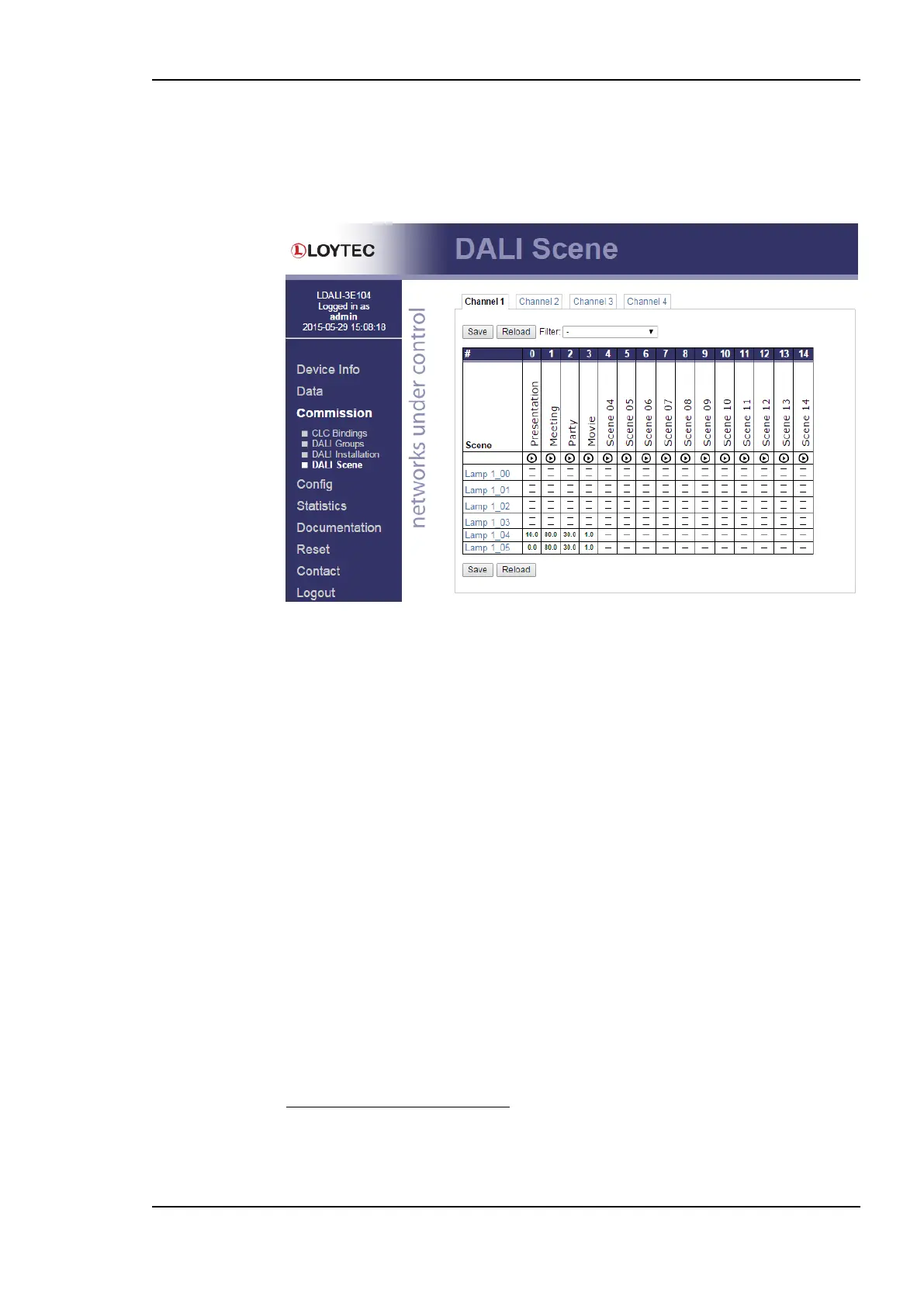 Figure 84 shows the DALI scene page. It allows the manual configuration of DALI scenes.