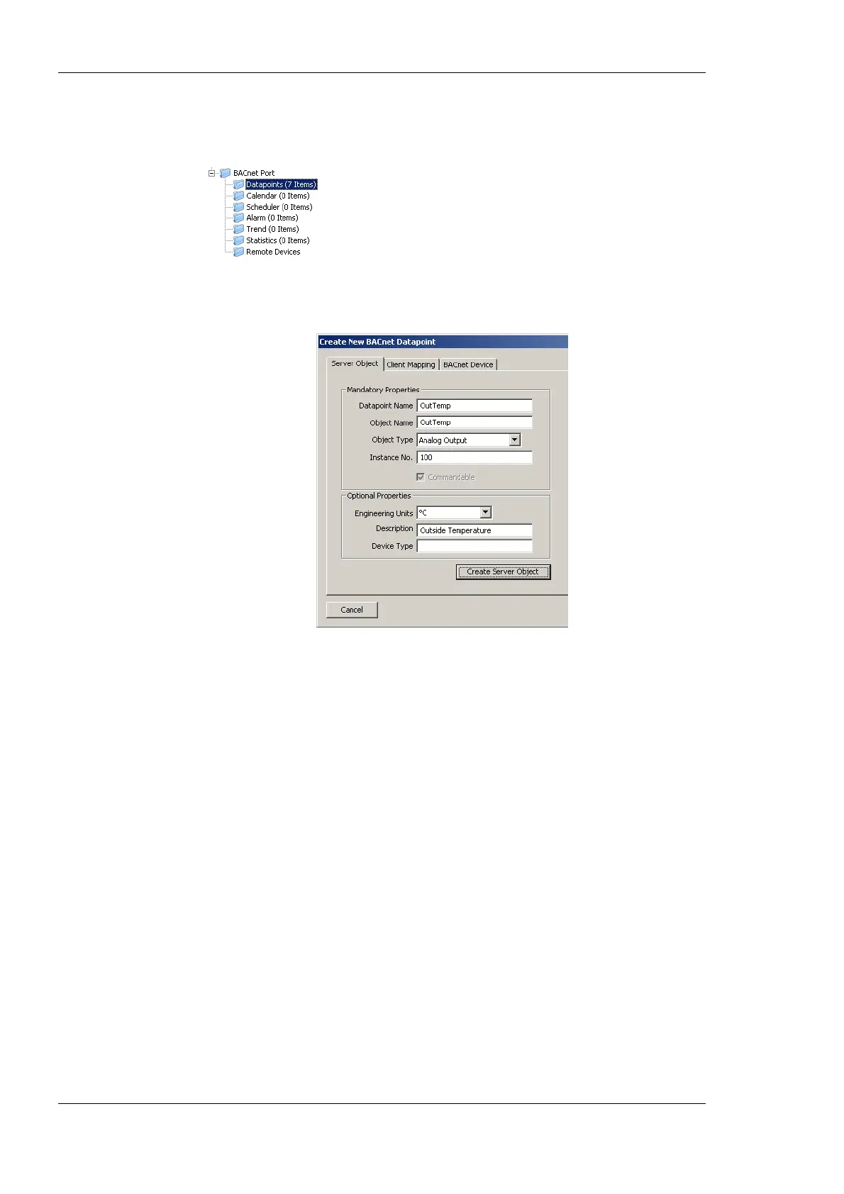 3. In the Mandatory Properties enter a Datapoint Name and an Object Type.