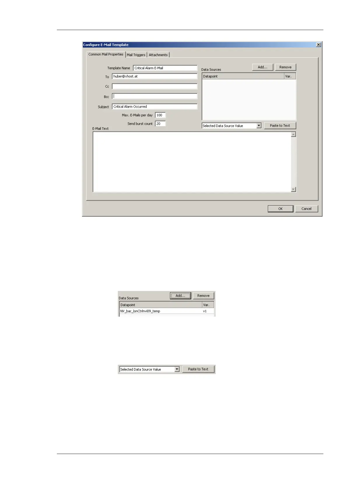 5. If the E-Mail text shall contain values of data points, add data points to the Data