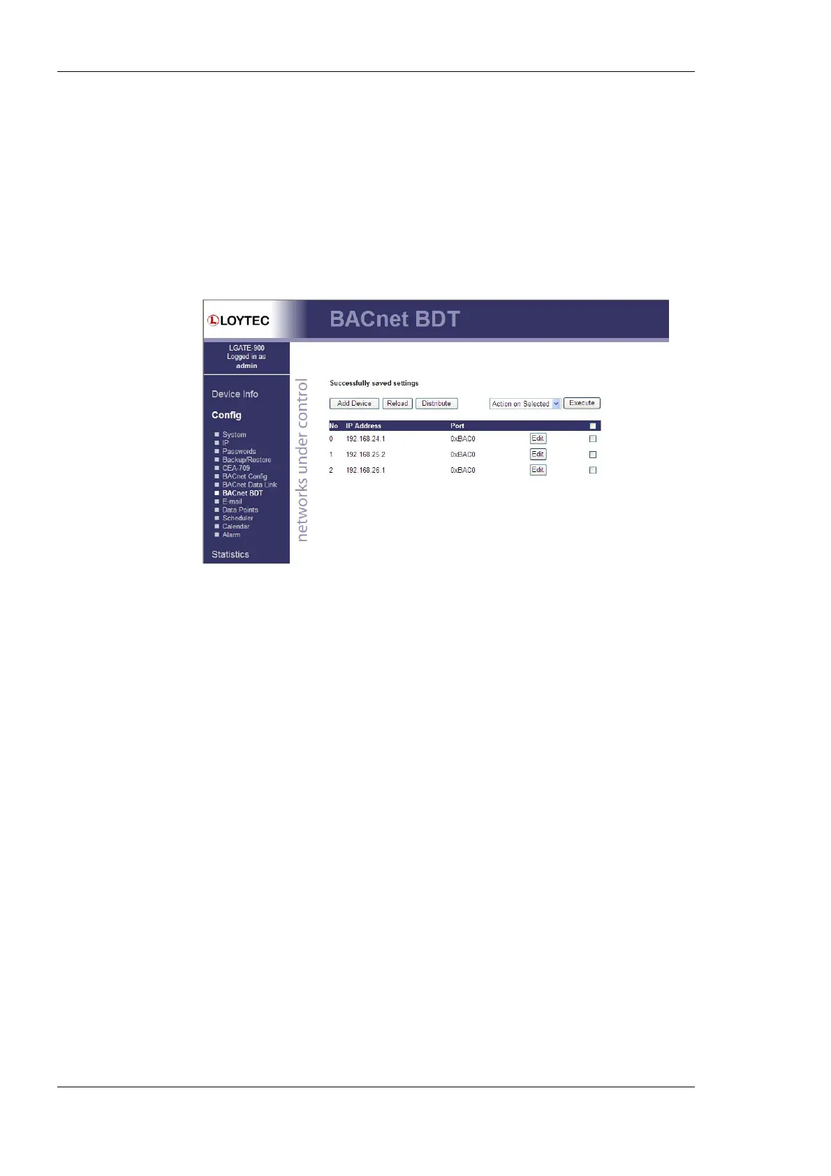 By clicking Add Device new BBMDs (IP address and port) can be added. With Action on