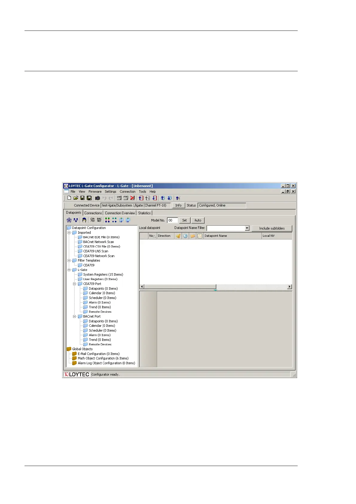 L-Gate. This starts the L-Gate Configurator and the main connections screen is displayed.