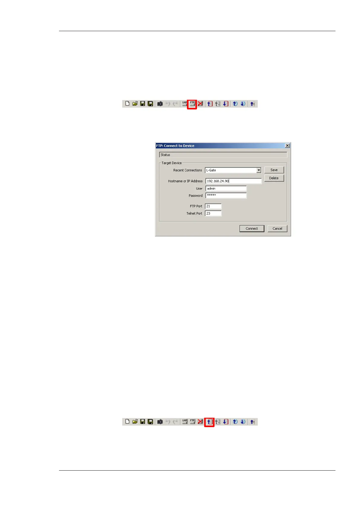 in the tool bar of the main connections window. The FTP connect dialog as shown in