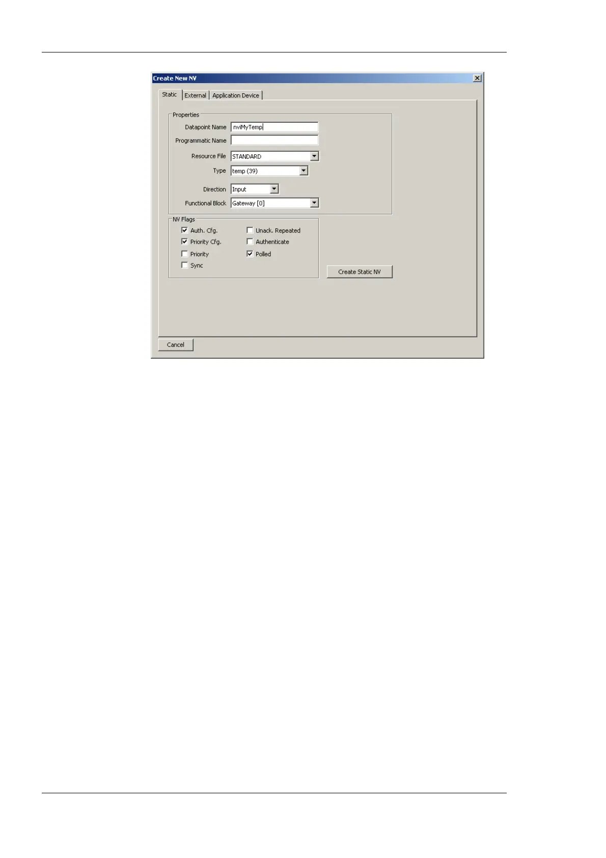 7. Click Create Static NV. The static NV is created and appears in the data point list.