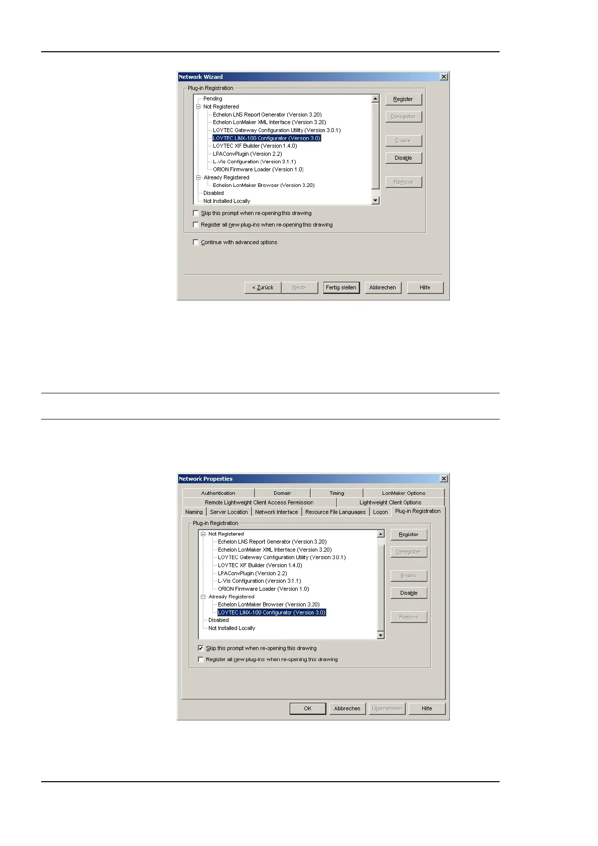 5. Under LonMaker Network Properties Plug-In Registration make sure that the