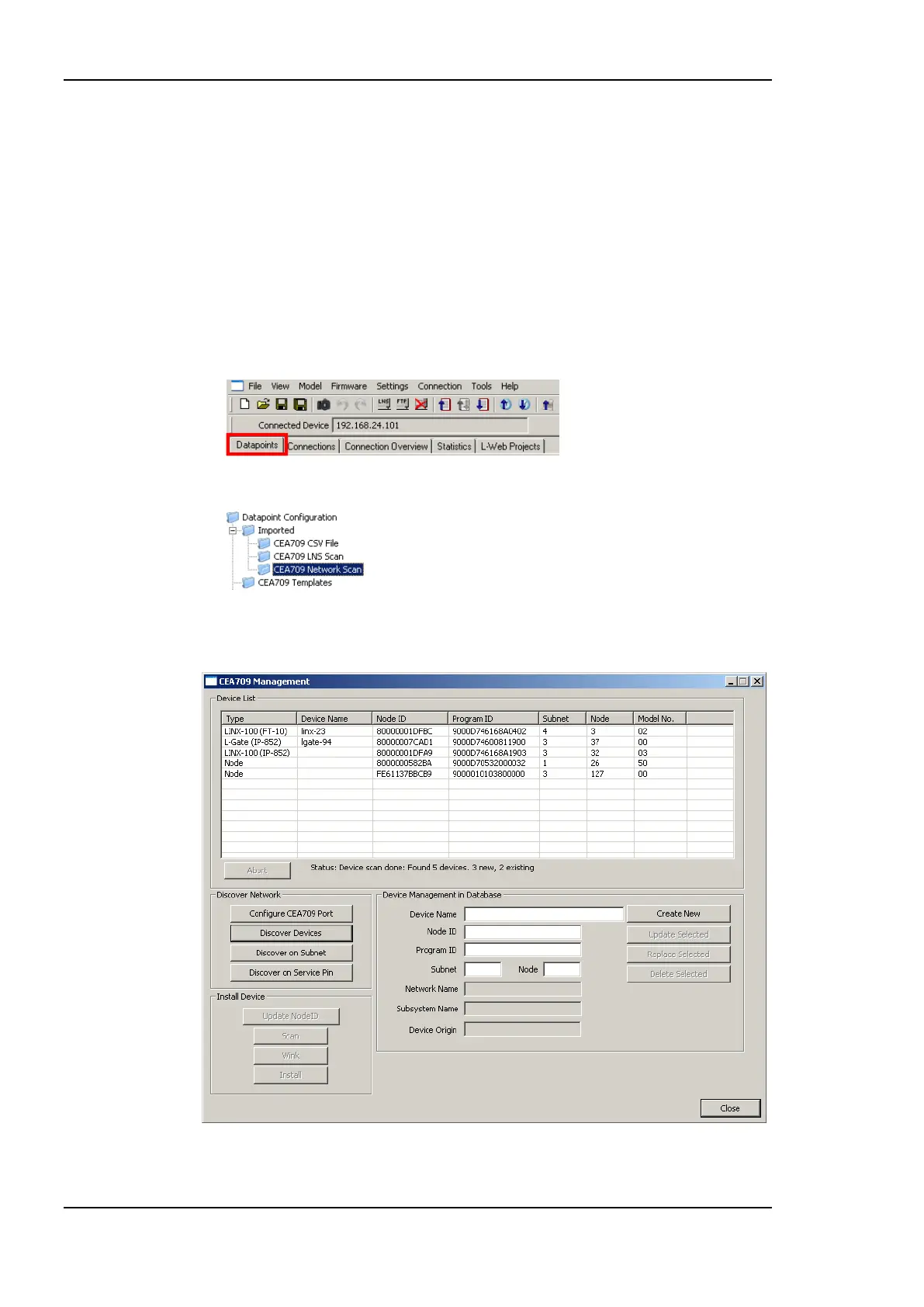 LOYTEC devices also support an online network scan on the CEA-709 network. In this