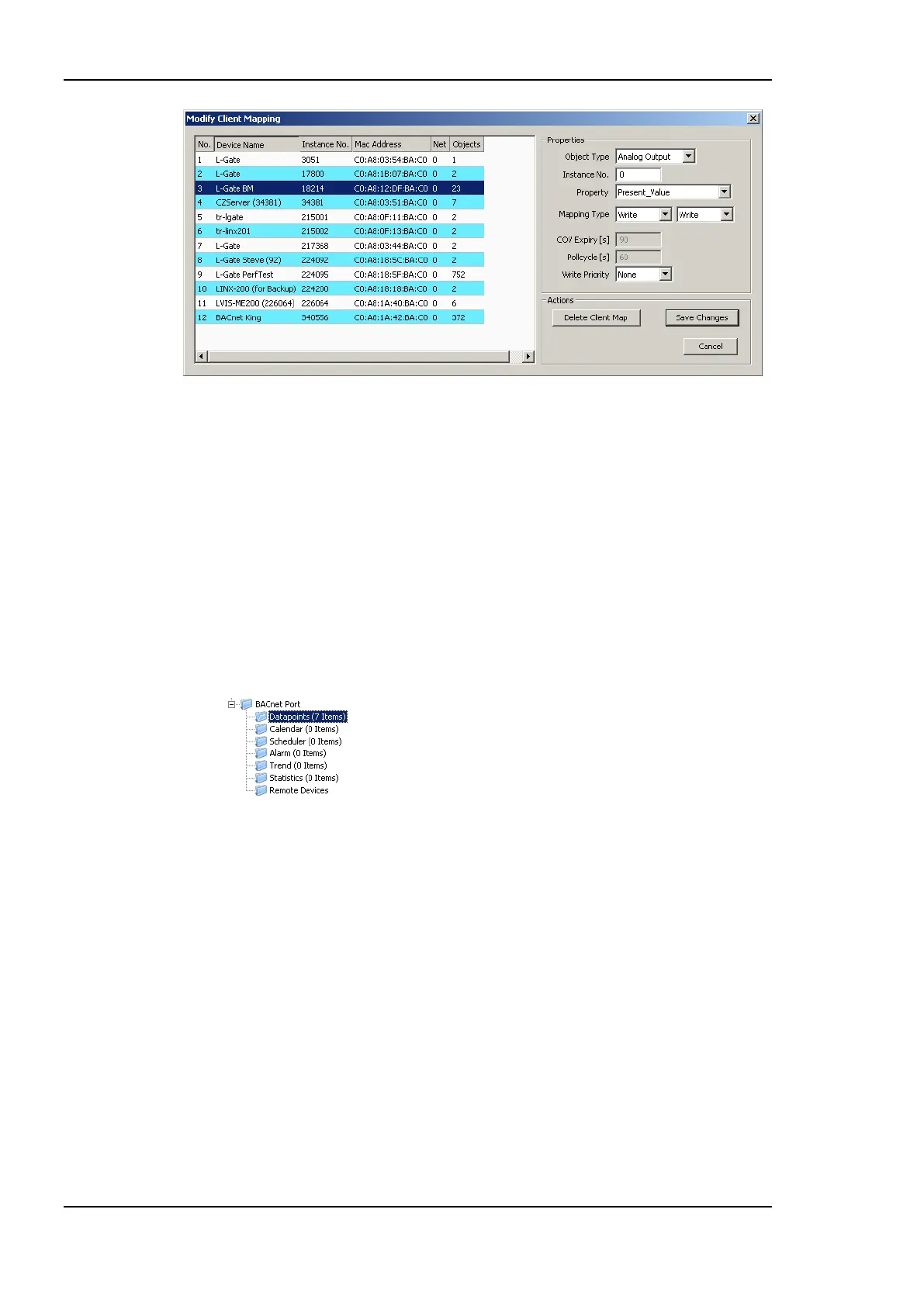 On the BACnet port server objects can also be created manually. These BACnet objects are