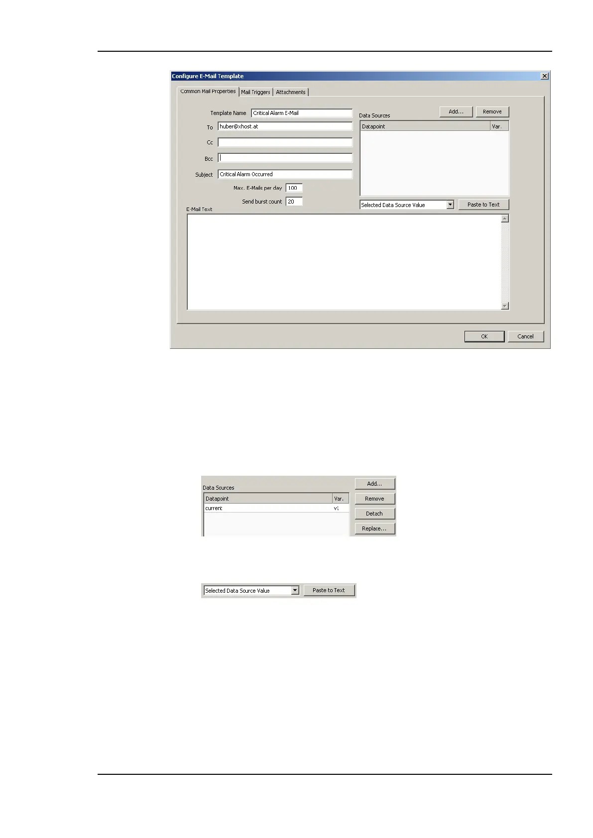 5. If the e-mail text shall contain values of data points, add data points to the Data