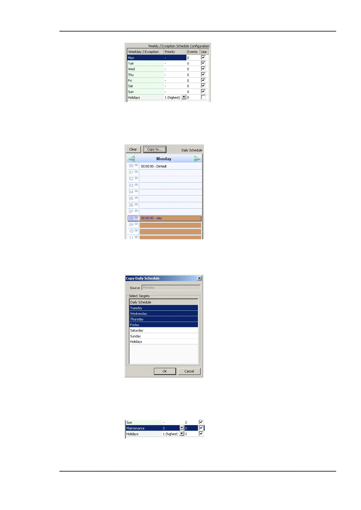 5. Completed daily schedules may be copied to other days using the Copy to button. For