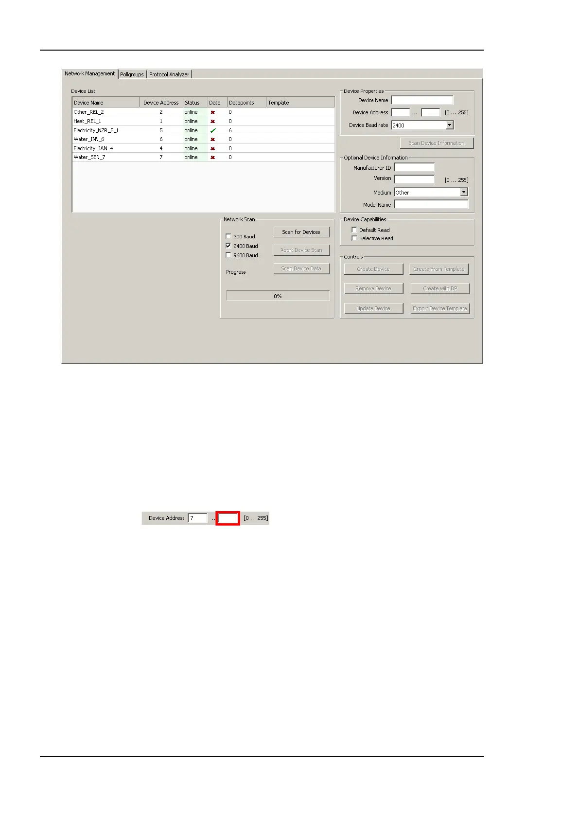 1. Fill in the Device Address and select a Device Baudrate from the drop down box.
