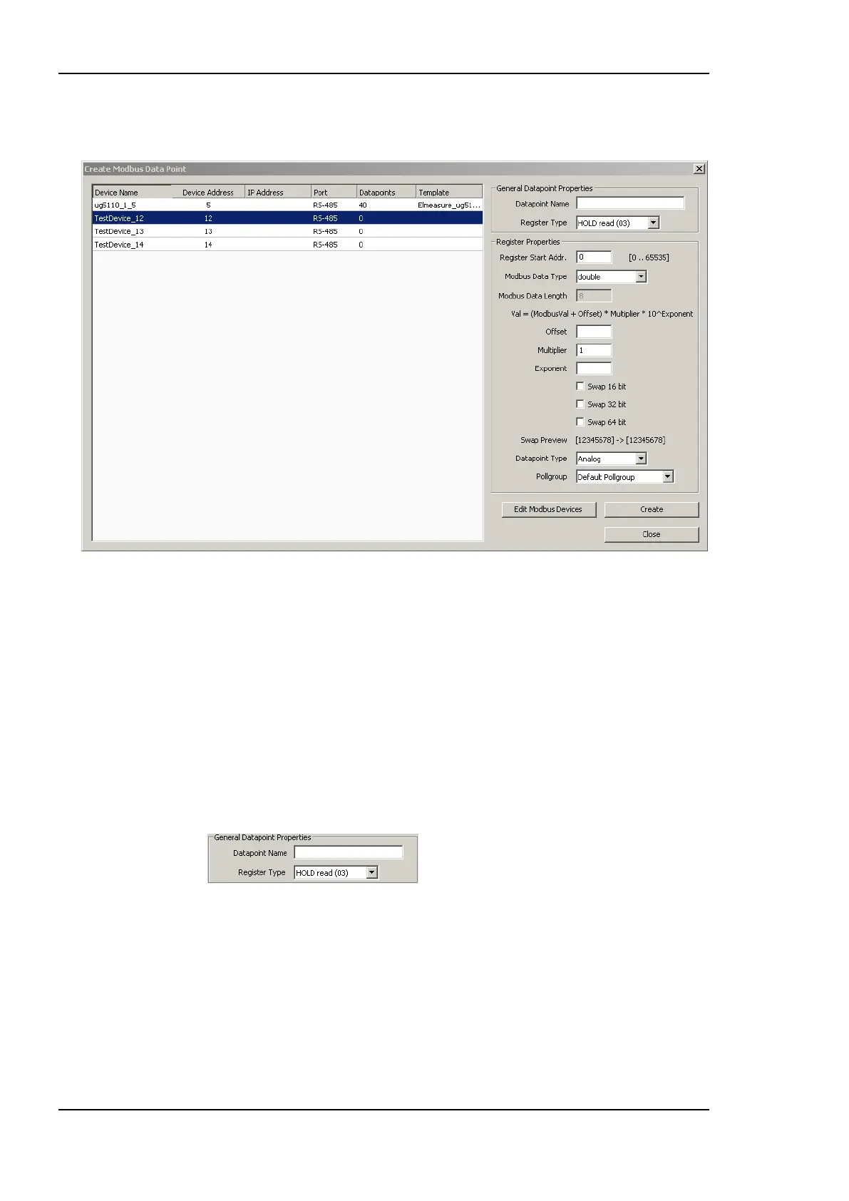 3. This opens the Create New Modbus Datapoint dialog showing only the devices