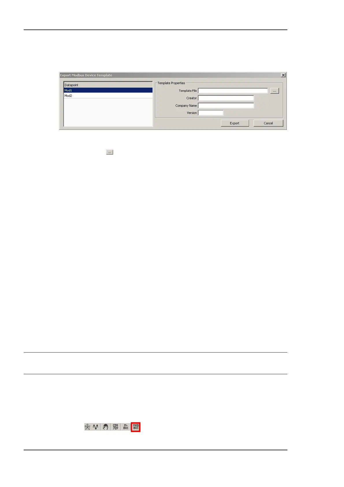 3. Press the Export Device Templ. button. This opens the Export Modbus Device