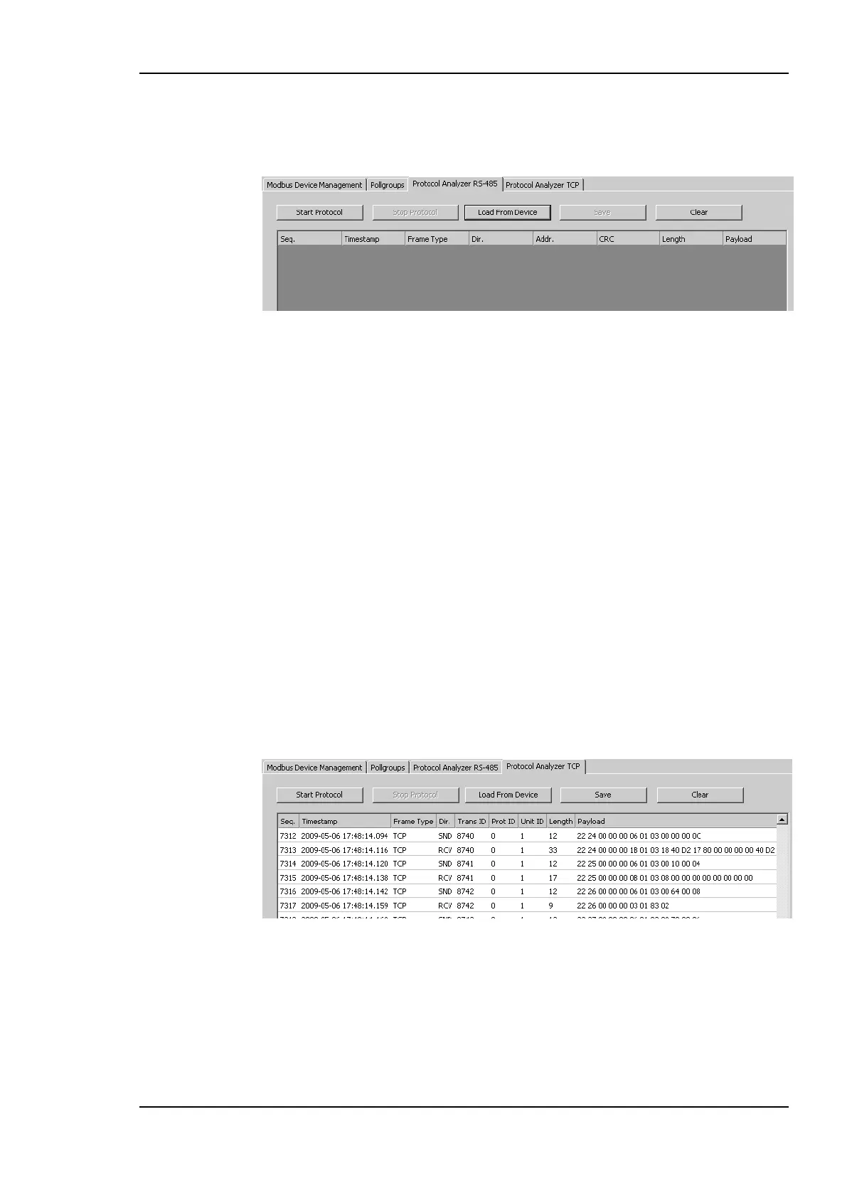 Figure 199 shows a typical protocol analyzer output for the Modbus RS-485 port. It shows