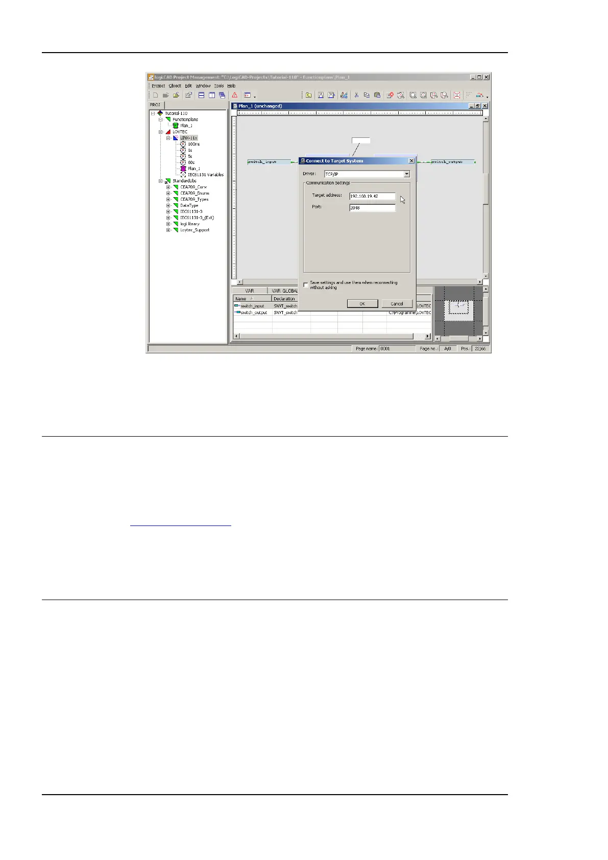 16. Select the TCP/IP communication driver and enter the target address as configured in