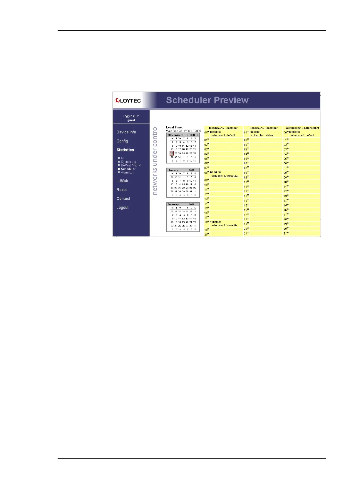 The scheduler statistics page provides an overview of what is scheduled at which day and