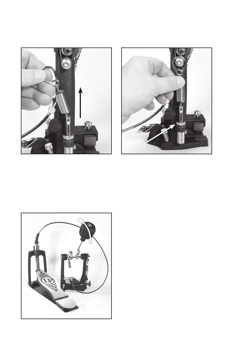 to test the pedal. The footboard chain should pull downward on the cable, rocking the beater forward.