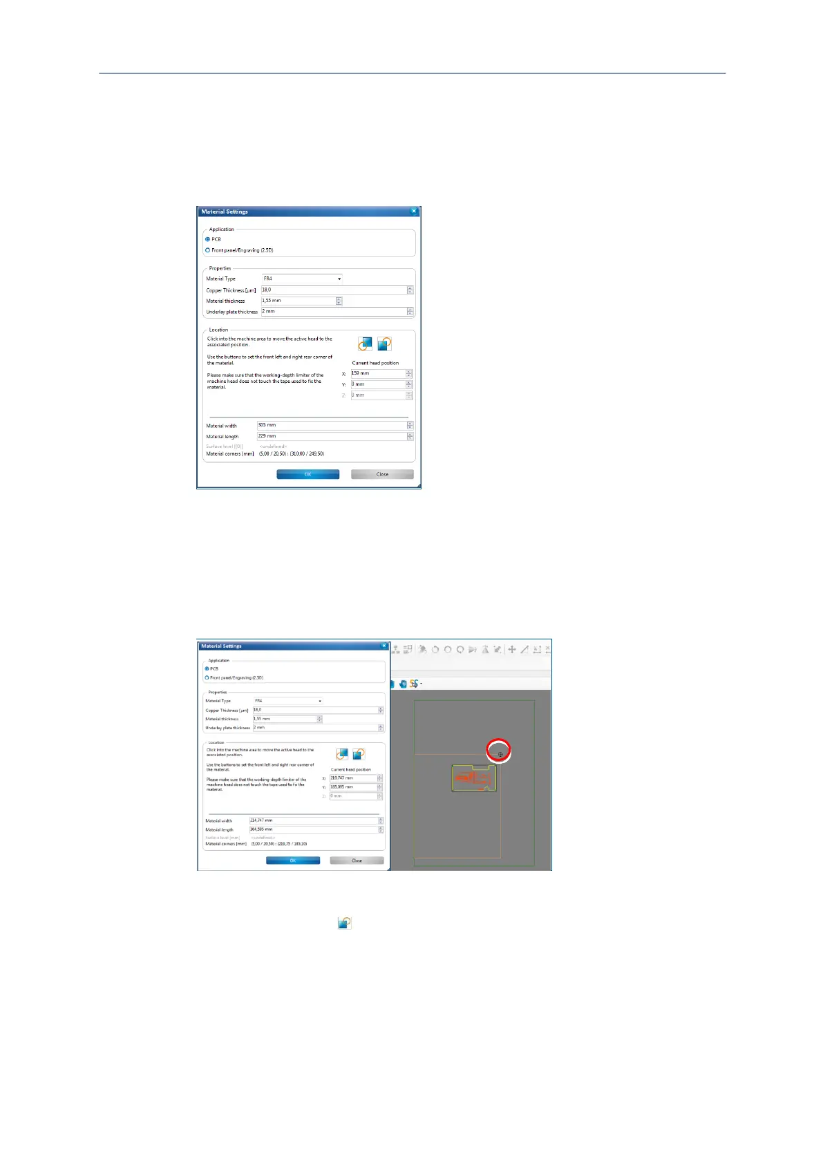 5. For defining the material area, move the dialog Material settings to the side.