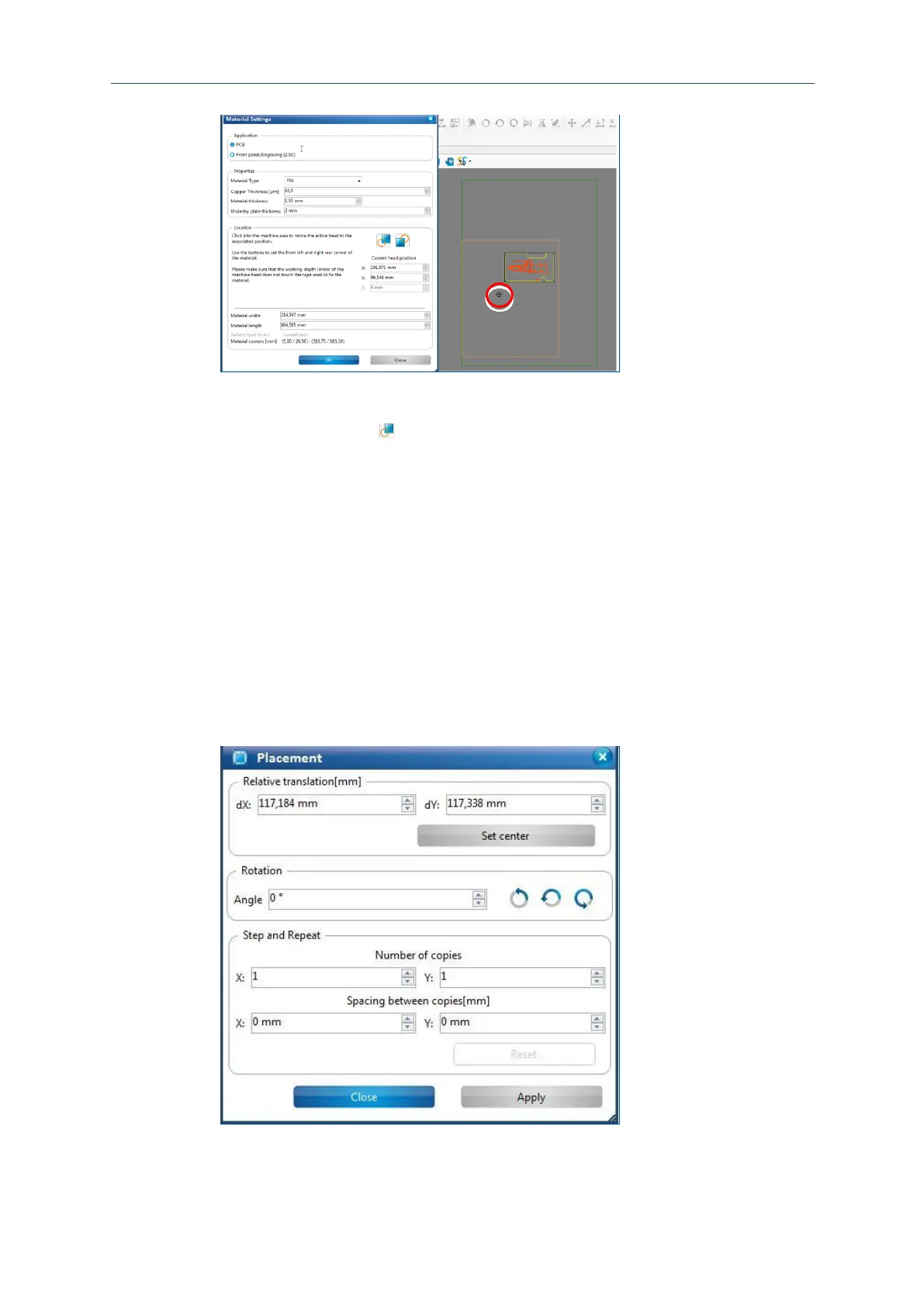 9. Click on the button in the dialog Material settings.
