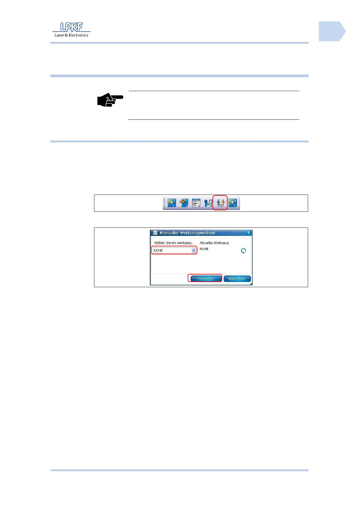 Pos: 25 /ED_Tec hnische_Doku mentation/2_Be dienungsanleit ung/Maschine/R P_Fräsbohrplotter/ ProtoMat_S _Serie/ProtoMat _S_Serie_IIG /Kapitel_6_Be dienung/6_05_W erkzeug_einri chten @ 1\ mod_1318239717 551_2058.doc x @ 37334 @ 2 333 @ 1
