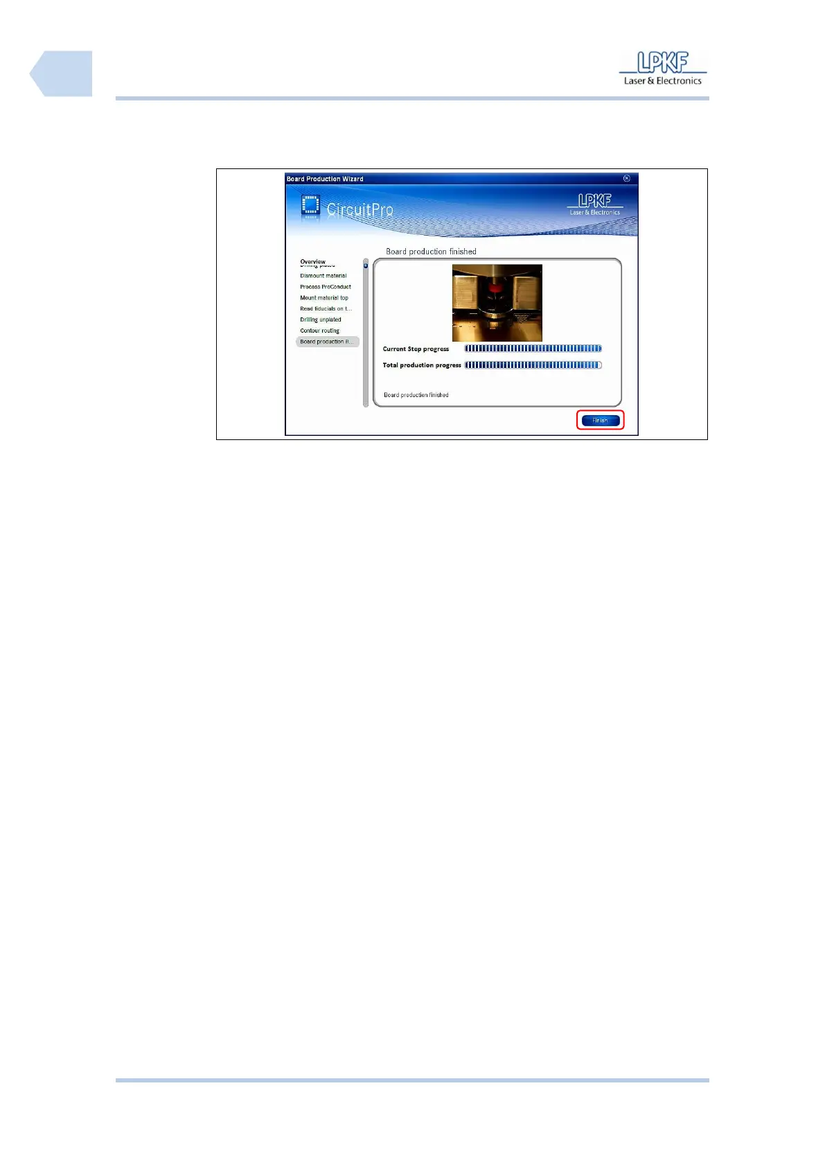 4. Click [Finish] to stop the board production process.