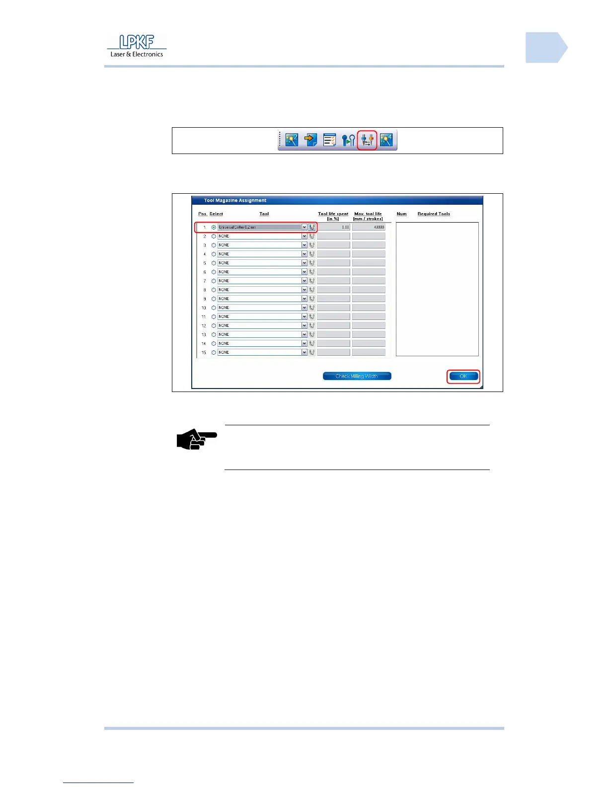 ■ Tool setup
