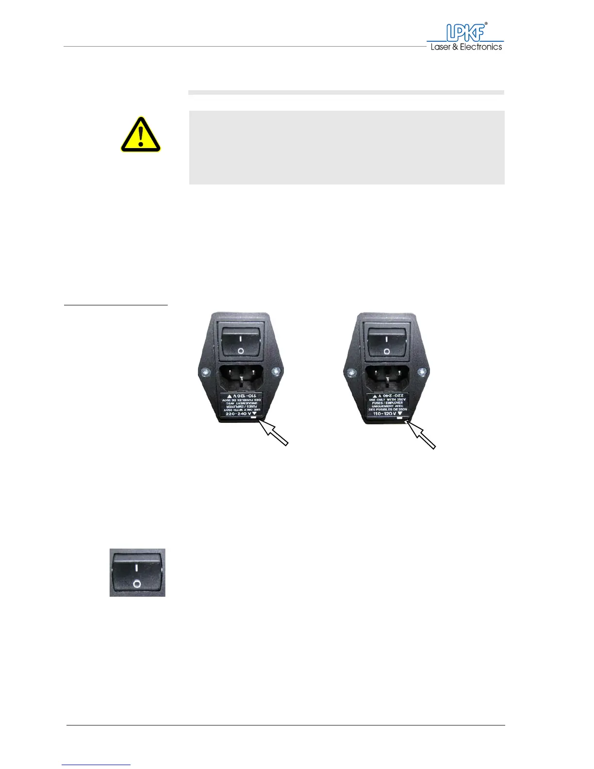 The fuse holder is located under the mains connecting socket.