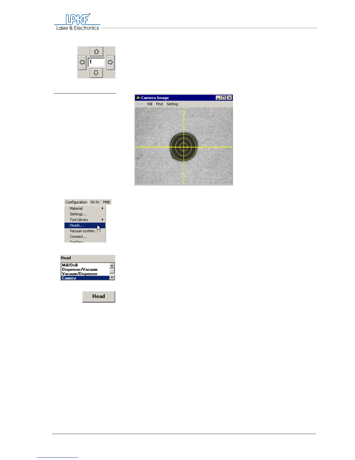 7. Move the head with the arrow keys until the cross-hairs of the cam-
