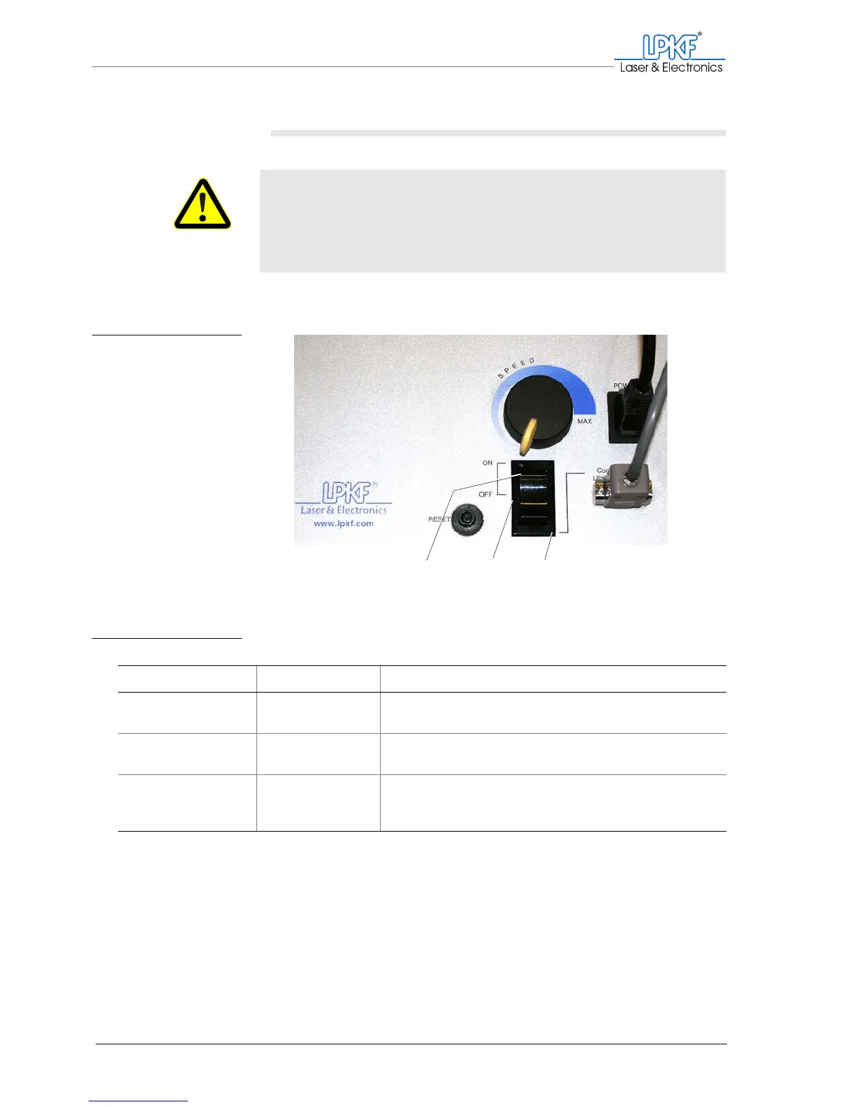 Tab. 5: Operating modes of the LPKF dust extraction: