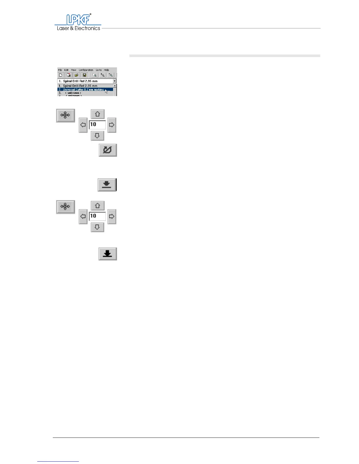 buttons to the starting point of the desired milling track .