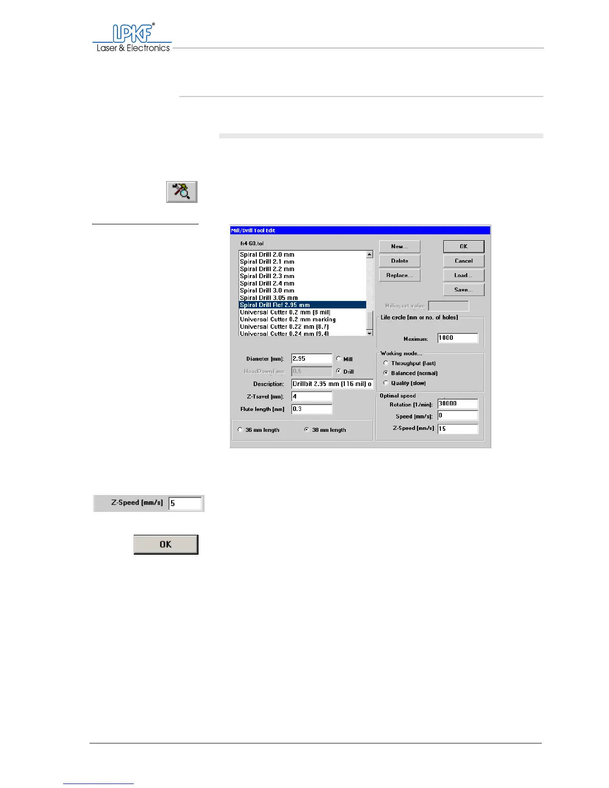 4. In the Optimal speed field, set the value for Z-Speed [mm/s] to 5.