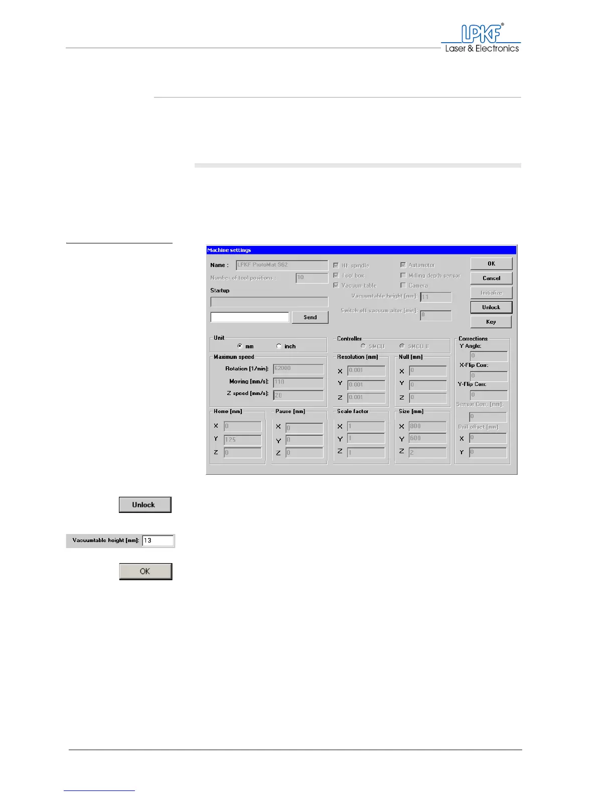 4. In the Vacuumtable height [mm] input box enter the value 13.