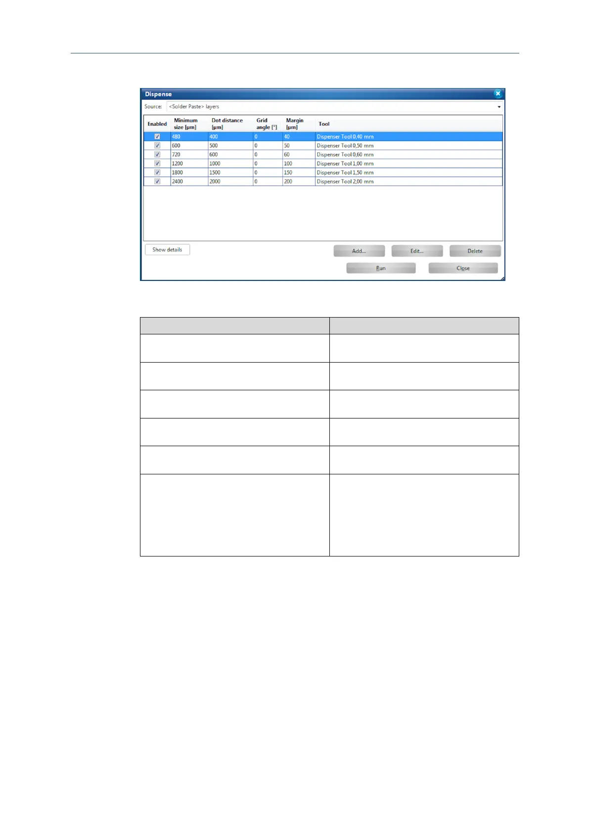 Table 14: Settings in the dialog Dispense