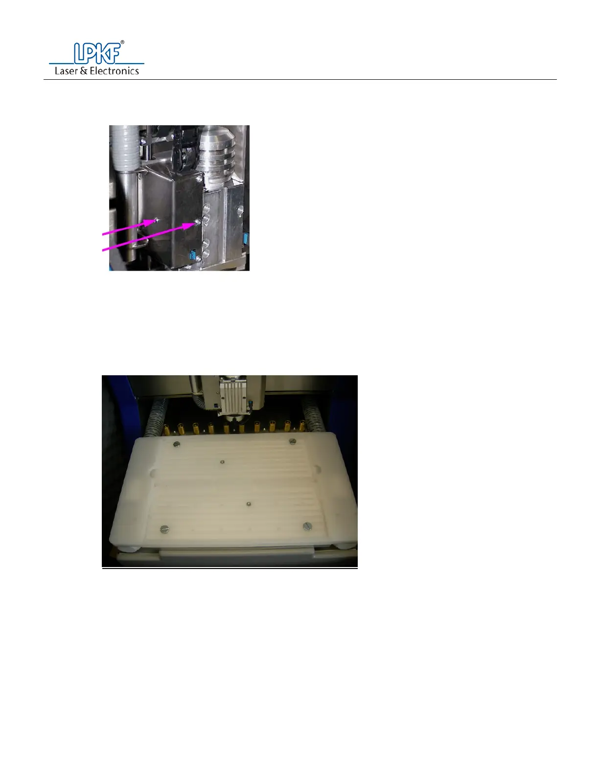 d. With the T20 torque wrench remove the two (2) T20 torque screws in the vacuum table bed