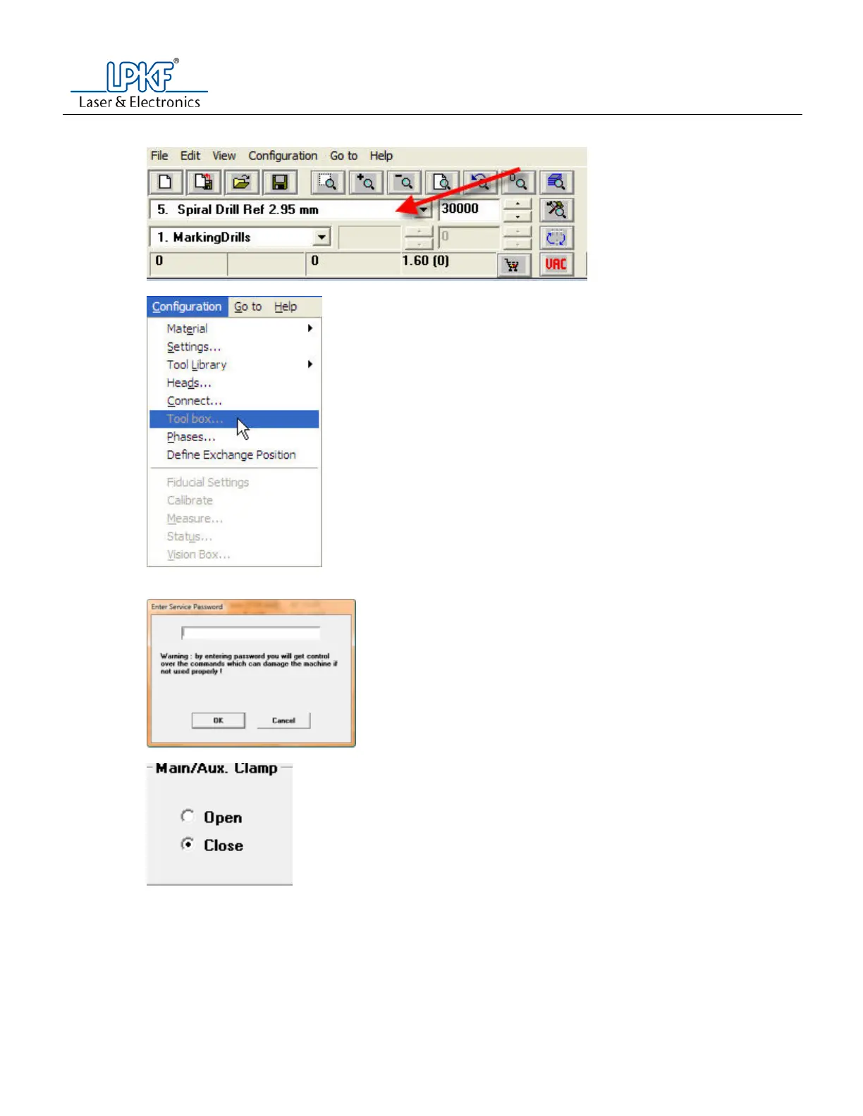 f. Go to the configuration menu and select tool box.
