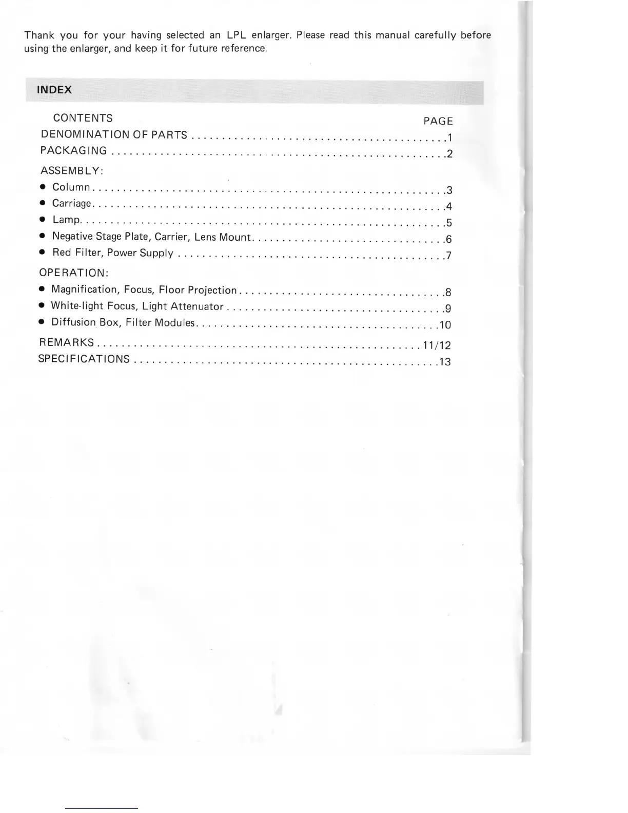 CONTENTS PAGE
